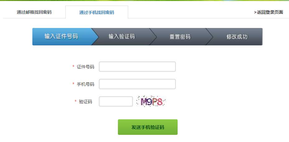 输入身份证号,输入验证码,重置密码,发送验证邮件,系统会把重置密码的信息发送到注册时所预留的电子邮箱;登陆邮箱输入验证码,点击重置密码,修改密码成功。
